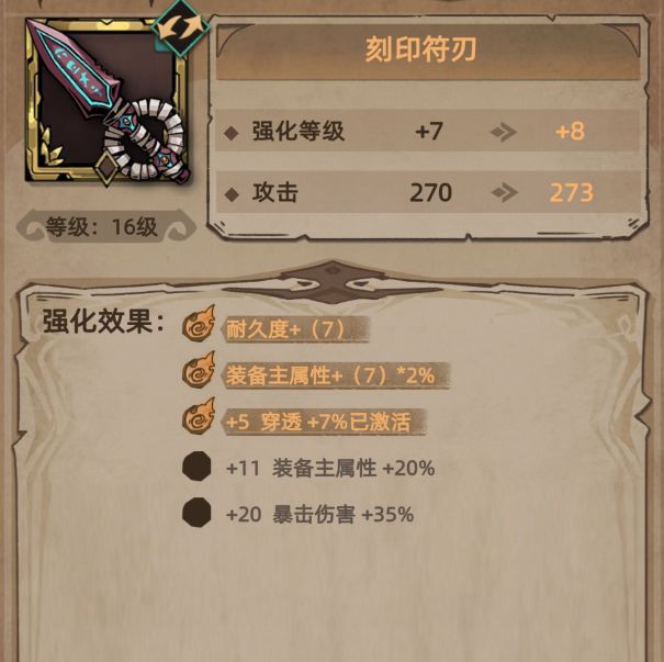 其中“强化装备属性”是铁匠们专门为勇者们新开创的一项升级功能,大家可以通过一些花费去逐渐强化武器属性。武器还会根据强化等级分别解锁不同强化效果,使武器达到最完美的形态。