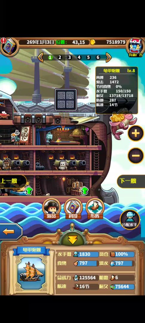 这个视频是没来得及造龟炮的补救方法,但龟炮一定要造,不用担心船员等级,我这里船员等级最高50级,你一路升船员应该差不多够用了。