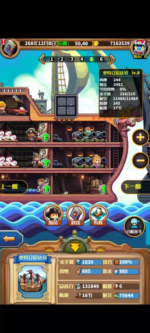 为什么他们被我确定为第二阶段呢,因为之后的平均海盗到青海断层,其次冰国与自由已经有一套完备的跑商。好继续说,如果你无氪,那么,第一次240年的黄胡子你有两艘b炮船其实也能过(当然,你说进风暴早,可以先去风暴东北支线打牌,再加上宝蓝的牌在宝蓝ss港打牌是没问题的或者继续探索地图)。这时就考验你肉搏的能力了。如果你把宝蓝的所有支线都完成,那么你应该能做两个剑鱼船首。之后打过第一次黄胡子后立马把经商科技学到a货,造好放3号位置并把旗舰给他。你说没海员,那只能说明你该探索的没做好。之后继续宝蓝的优良传统。打过青须后,考文垂会给你些材料,注:之后的主线大部分只有声望奖励,所以但绯红后主线可以缓一缓,初期10w金币有很多用处,别浪费在主线。虽然有宝-绯红线,但还不如打海战和跑事务所,初期跑商比较浪费时间,21w声望后加入自由投资木头,偷渡青海,直接跑商再造一艘a货船。c引擎的b炮船寄存仓库,另一艘b炮船变1号,再次类推到3号。这时附近会有第二次黄胡子。b炮船换上b级远射炮(后面的炮船造了之后就立即换上b远射,如果没特别要求)。旗舰换上你水手伤害最高的,第二次胡子应该没问题,之后跑商青奢侈品,卖绯红东北的奢侈品港记得抬价。绯红香料卖青西的香料港。之后造a战船(皇家战列舰)放1号位并附上旗舰,上最好的配置4,5级即可,其他两艘a货船分别放在2,3号位置。b炮船放4号位置。第三次胡子没问题。之后你需要打绯红东北的金海怪(一定要有广告)顺便再造一艘郑和放5号位(其实2a货船,1b炮船就可以打过了)。3倍两次用在金海怪身上最好是多sl几遍,让海怪爆强化橡木与强化红木。并在存够600木,300铜,100铁50银,20金后加入和国投资迷雾西南的ss港的骨架之后过半年有两个,总有3个(声望奖励1个)之后,准备第一次暗影海盗。这一阶段结束,注:金币最起码300w以上,所有科技跟上。主,支线尽量跟上。最后提一嘴,这段时间跑商时就没必要上a战了,顺便提一下,这时候你应该有九个有“剑圣”技能的水手长,并且做事务所的灵感平底锅任务让他们和肉搏船长的等级跟上,后面不会再提。
