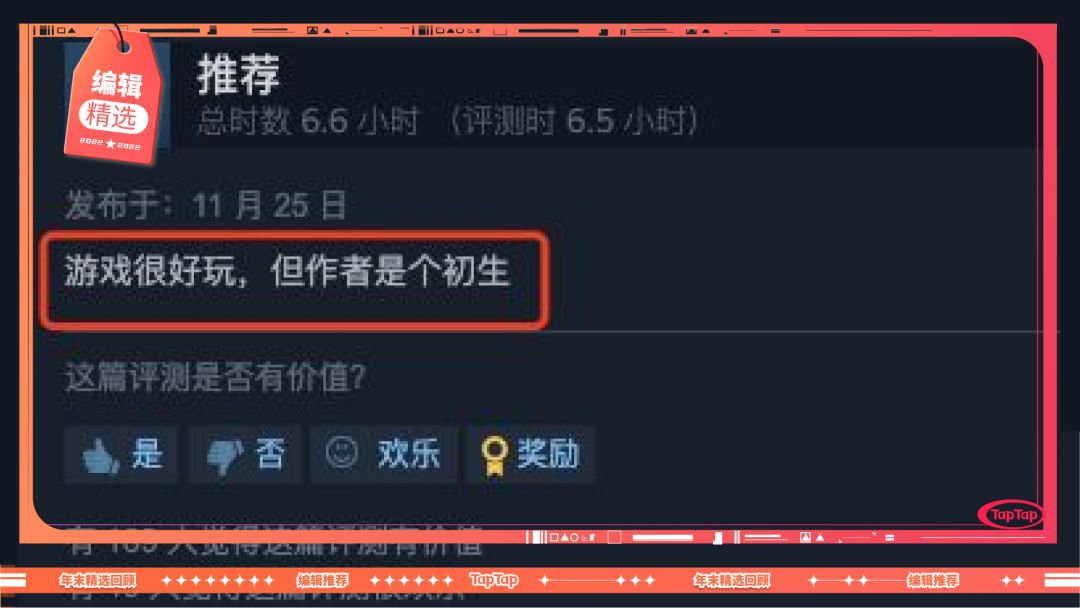 各位一直关注 TapTap 编辑的朋友,想必知道我们数年以来一直持续输出各种游戏安利、热点杂谈等等有关无关游戏的文章。反正春节放假没人看新文(划掉)年底啦,我们也挑出了过去一年间写过的比较有趣、没有时效性的文章,按照每天一篇的节奏重新发布,称为“年末精选回顾”。年末精选回顾,敬请收看。