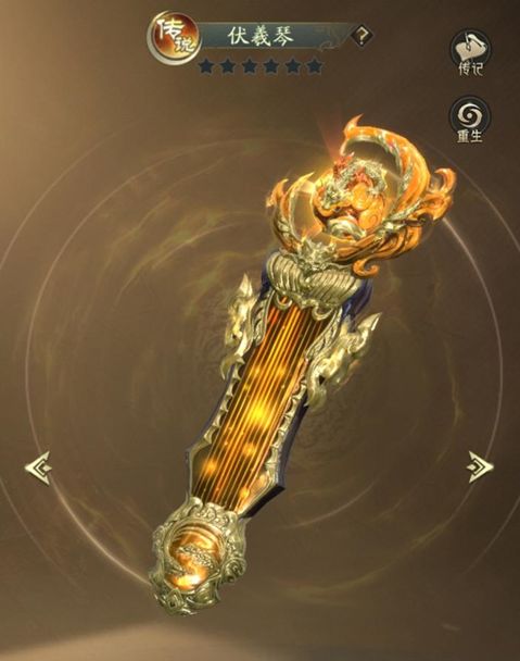 伏羲以玉石加天丝所制出之乐器,泛着温柔的白色光芒,其琴音能使人心感到宁静祥和,据说拥有能支配万物心灵之神秘力量。