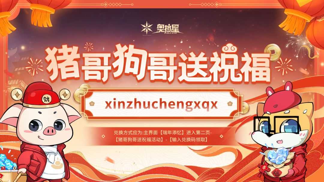 领取方式:兑换方式应为:主界面【瑞年添忆】进入第二页-【猪哥狗哥送祝福活动】-【输入兑换码领取】