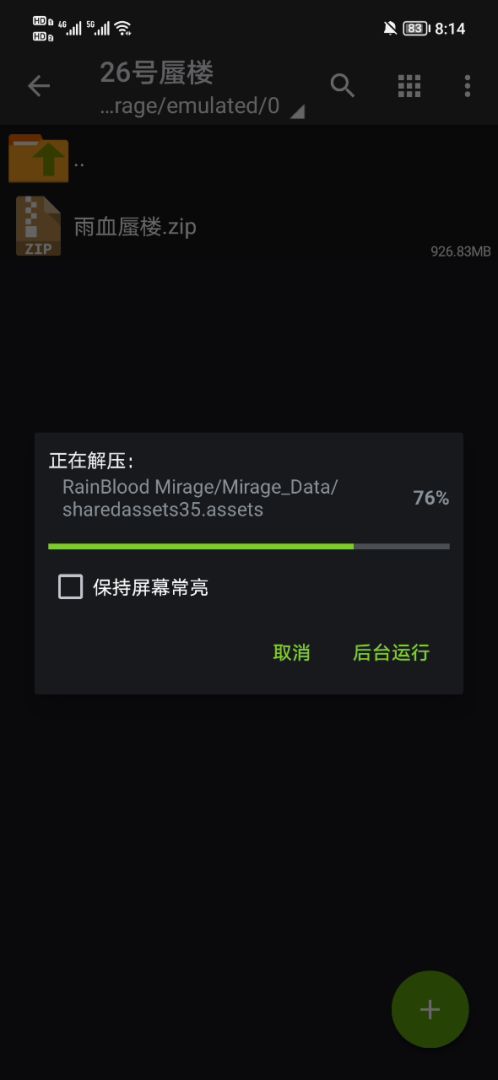 2.下载《雨血:蜃楼》900多mb游戏压缩包,下载后在文件管理里找到下载的游戏压缩包用《ZArchiver》解压工具解压。