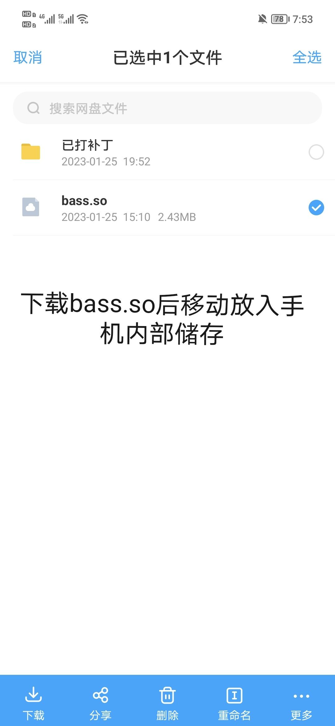 1.下载bass.so移动到手机内部储存,不要放入任何文件夹。