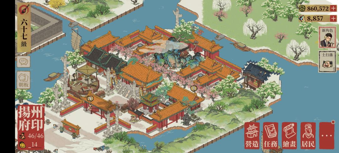 8、宫殿内树木选择有海棠(寓意玉堂富贵)和琼花(扬州府标志性花卉)