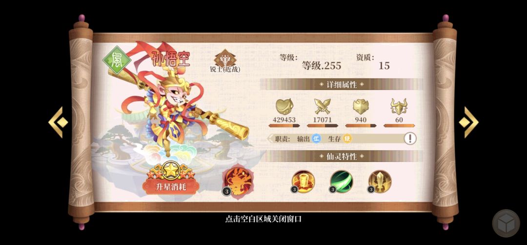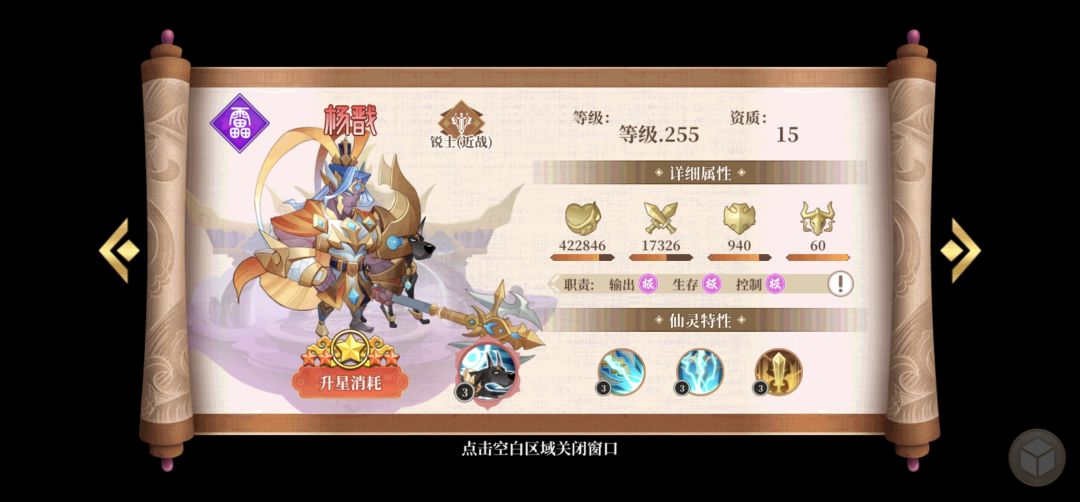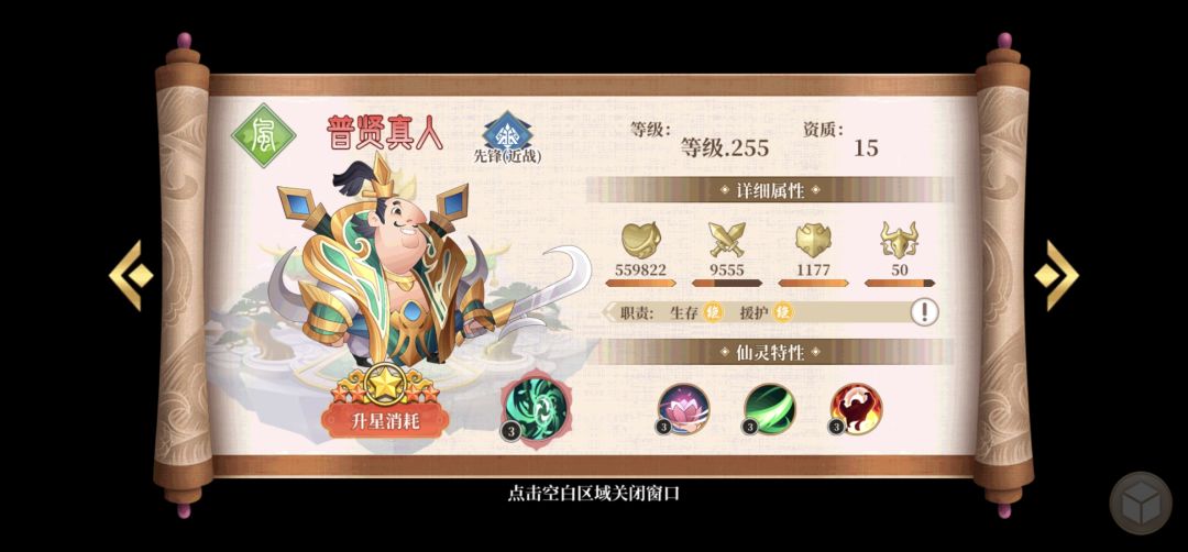 这里我单独说一下这个游戏的角色属性,很重要很重要很重要。15.16资的满星满法宝,需要22个本体,满了以后,所有仙灵的防御将固定不变,以后增长的都是攻击和血量,三个基础属性,攻击防御血量,只有防御有极限,先锋的是三千多点,锐士是接近三千,中距是不到两千,后排是不到四百,这是极限。也就说,所有的15.16资后排,500万战力,1500万战力,跟三千万战力,防御一样,增长的只是攻击和血量。这很重要,一个三十万攻击的橙子,打黄梅,暴击一下差不多是四百万,不管你是什么战力的黄梅,暴击一下都是大概四百万。橙子1000万战的时候,差不多就30多万攻击了。而黄梅2000万战的时候,也就五六百万的血,而且后排不会有什么爆抗,打上几乎必爆,爆了就是丝血,没狮子被动就是死。后排打后排的输出是严重溢出的。所以,你的阵容定位为打前排还是打后排,这很重要,后面我会为一些英雄翻案,重新定位。圆子,就是一个定位特殊的英雄,他整体输出低于橙子多宝,启动也慢,这方面的确差点。但是他打后排的能力,在所有法师里是最稳定的。而且跟土猴有技能联动,土猴也是打后排的。无狮子的话,1200万的圆子,放大90%秒后排。有狮子,圆子土猴配合,也有较大概率能杀后排。这个仙灵比较有争议,选择需谨慎。