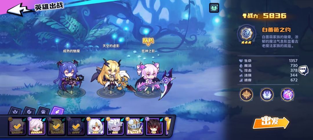 阵容上选择成熟的魅魔,天空的虚影和死神之影。
