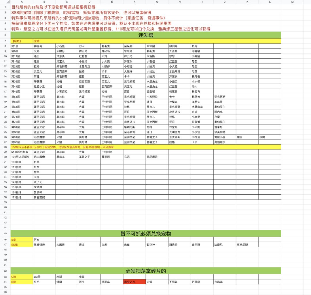 楼层可能出现的宠物:(每周六会增加捕获SS宠的概率)会出现不常见的ss宠 大概会出现框里的宠物,小概...