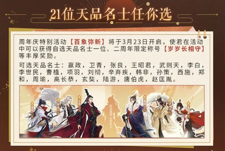 4.鉴于周年庆的朱元璋和赵匡胤有天命,可以考虑追一下新版本搭档,不过个人觉得没有韩信张良那么硬霸