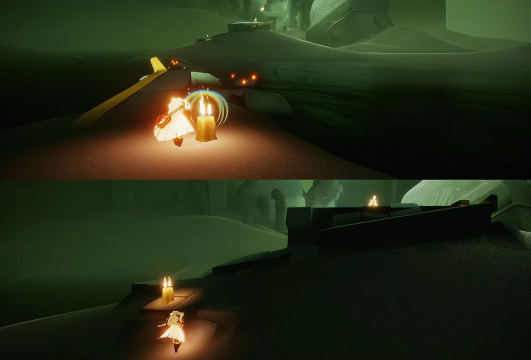 第二个季节蜡烛:拿完第一个之后我们继续往前走,在即将到达断桥台的位置就能看到第二个季节蜡烛。