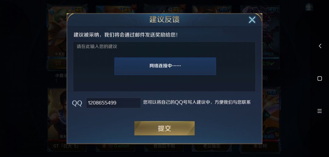 一开始能进游戏,但是比赛开始读条就不行了,再进也进不去,显示网络数据连接,但我移动4g网用其他软件都没问题