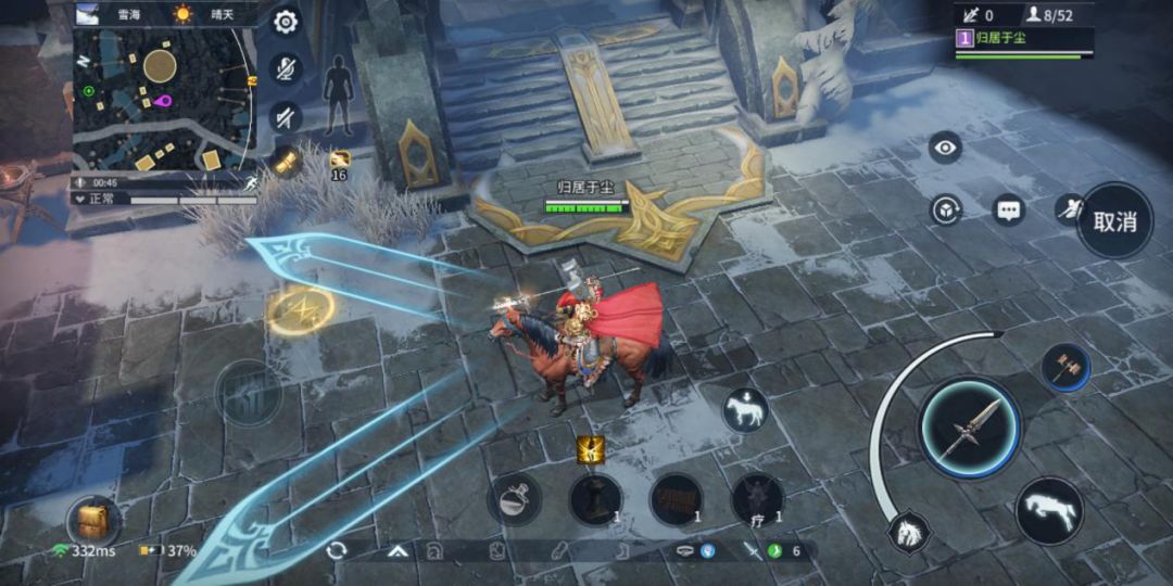 所谓“骑砍玩法”即乘骑战马手持利刃,和对手展开厮杀。马匹在战场上扮演坐骑的角色,能够带来速度和攻击力加成,从而帮助猎手完成突出重围、千里奔袭等操作。马匹的操纵感不同于枪械战斗中的机动载具,没有“轰隆隆”的噪音,只有“哒哒”的马蹄,而这便是忠于中古战场的体现,也为猎手带来了别具趣味的游戏体验。