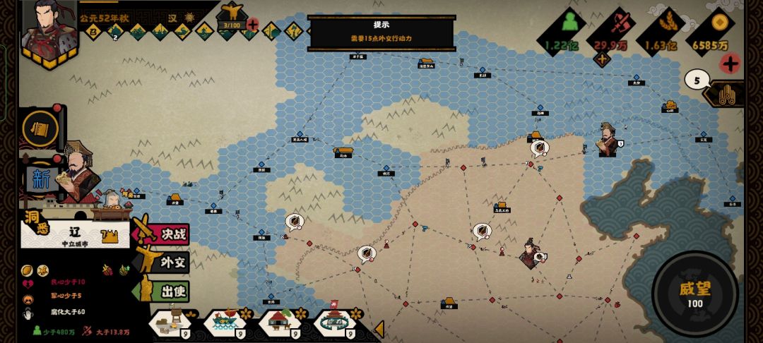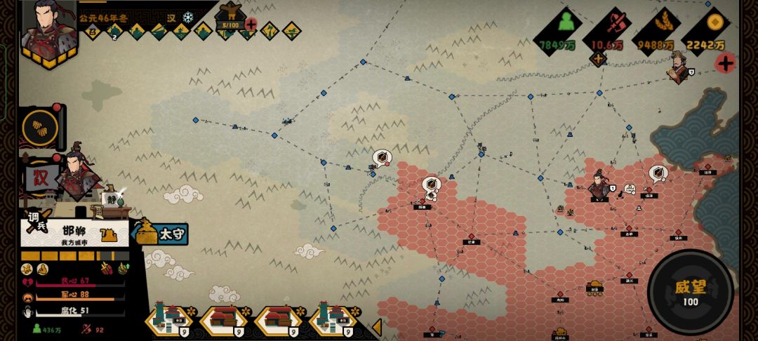 第一轮进攻结束,基本恢复了原来大汉的版图