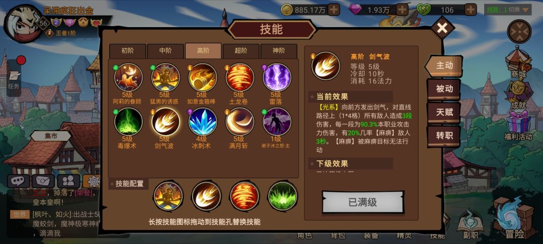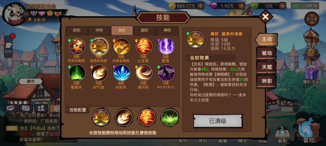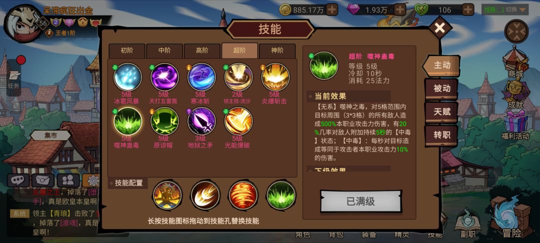 技能选便宜的 猛男 剑气 土龙卷 蛊毒