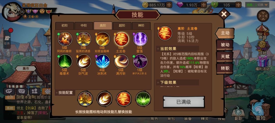 土龙卷(很便宜的技能且倍率相对高一些 且是无系的 众所周知 无系在被动层面是人上人的存在 运气好还能接个控制)
