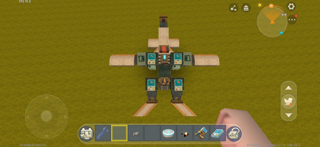这次我把飞机做了一下,改进,让他从原来的基础上可以拐弯。并且我把他的机翼后面改成了铰方块。让它可以上下30度移动。就可以实现上下飞行。就到这里,感谢大家多多评论。不喜勿喷。