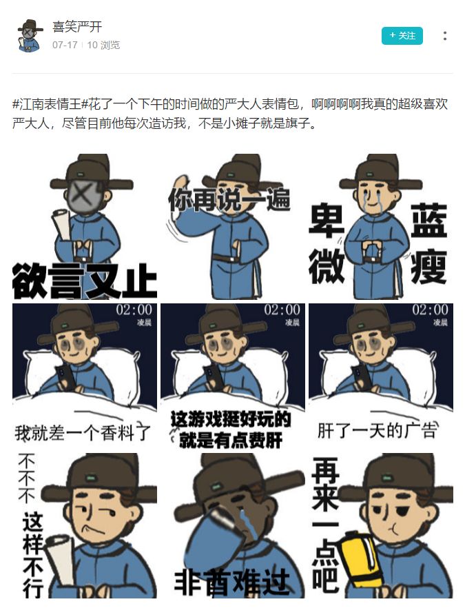 感谢各位才华横溢的知府大参与表情包设计活动,同时也感受到大家对严大人炽热的爱;经过挑选,以下出
