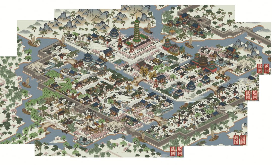 前言:这篇布局是应天的中轴对称式布局,因为娱乐建筑只有3种,要完全对称很麻烦,也存在很多瑕疵,诗也比较难写,所以鸽了一天,之后……改为10天一篇 下一篇是苏州,在8月6日。