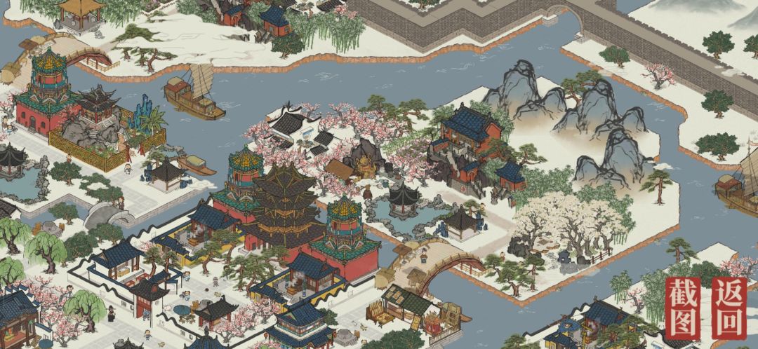 在远方商旅经过驿站时,必然会看到远处的盘龙柱,而集市也因此得名“盘龙集市”,这里是城内瓷器店与油纸伞店的货源地,也是其他城市各商人的交易之地,越过盘龙集市,便到了“望舸亭”人们在这里眺望行商归来的亲人,而经过一片桃花林,便是油桐树林,每当油桐开花之时,便有大量游客雇佣画室中精艺的画师来此打卡,这也是城中有着众多画室的原因之一。
