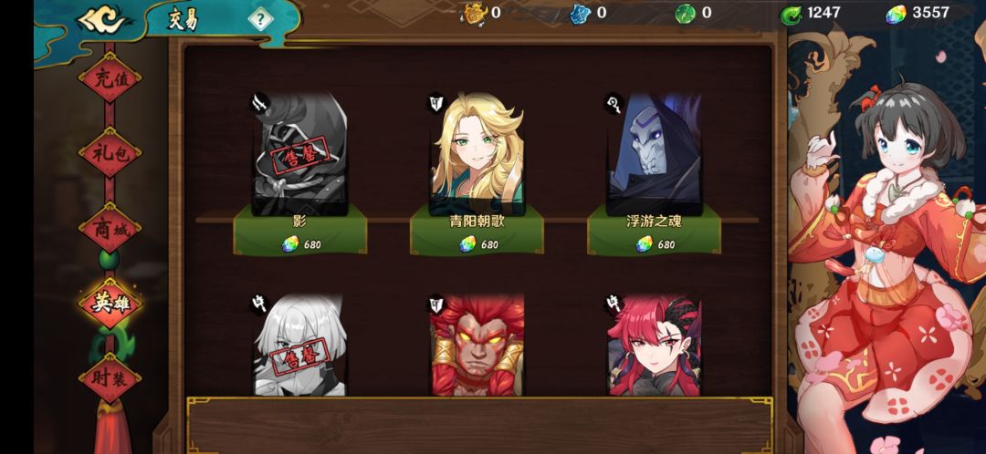 过完所有新手引导后,会送三个角色,推荐用涂山瞒。也可以挑选一个自己喜欢的角色,目前游戏内容所有角色都可以放心培养。游戏初期的五彩石都可以拿去商店买英雄,这样会划算一点。还是推荐大家使用元素队,物理队实在是一言难尽。下一贴我会发一个创号4小时就用涂山瞒通关六星装备本的一个视频。我最喜欢的物理队,却连五星本都没打过去,实在是天差地别。
