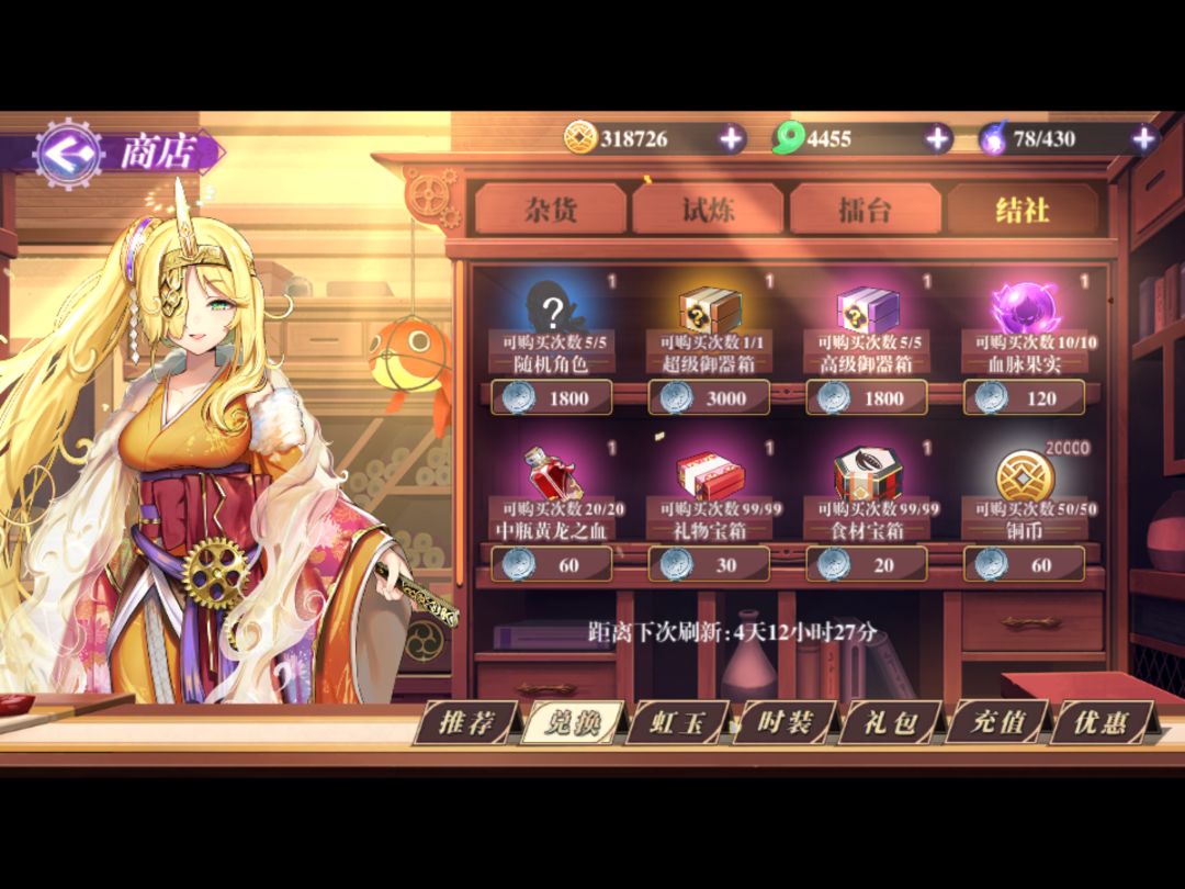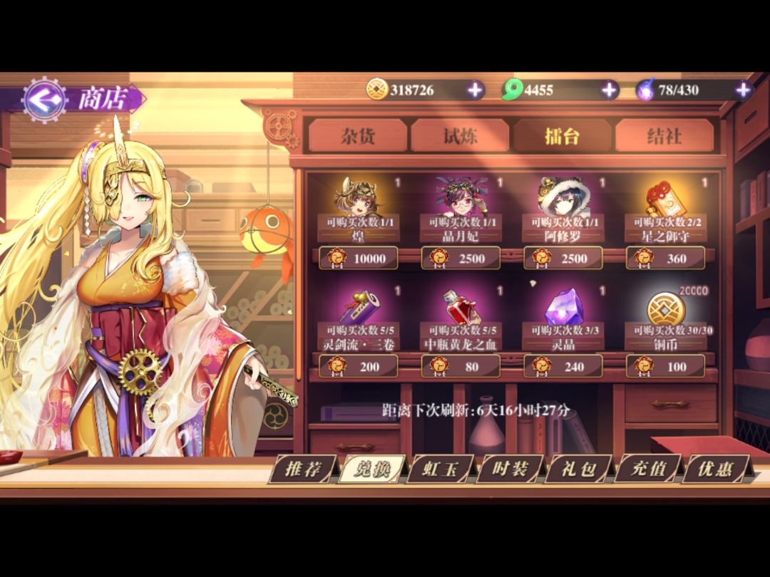 在商场兑换界面看不到有多少货币,只能在试炼,擂台,结社看对应的货币