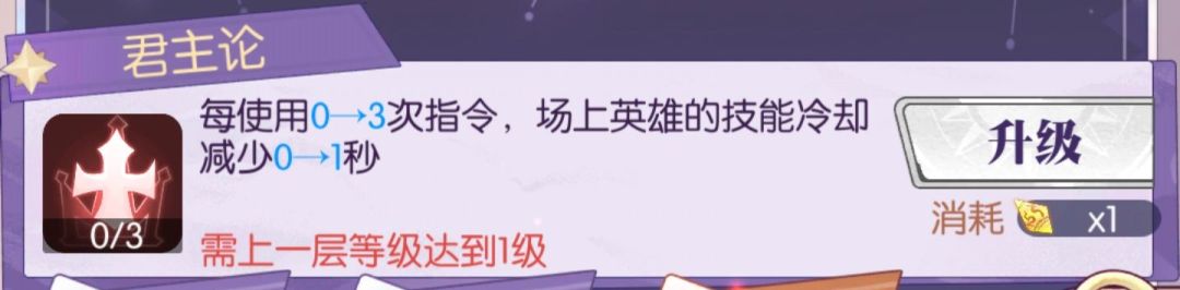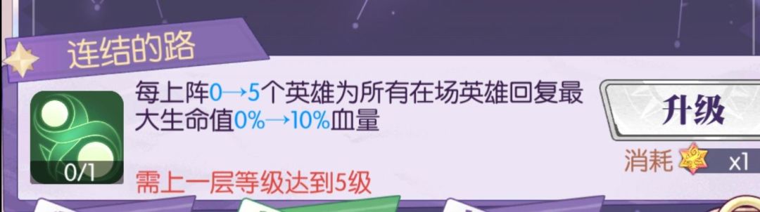 说明:此技能可能让场上英雄一直满血,导致无法上阵新英雄给主角回血,如果你的英雄死的很快,那么此技能为【点满】