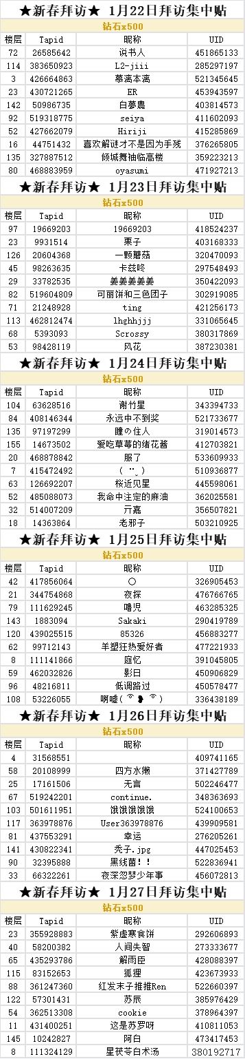 (已开奖集中帖)★新春拜访★ 1月27日拜访集中贴