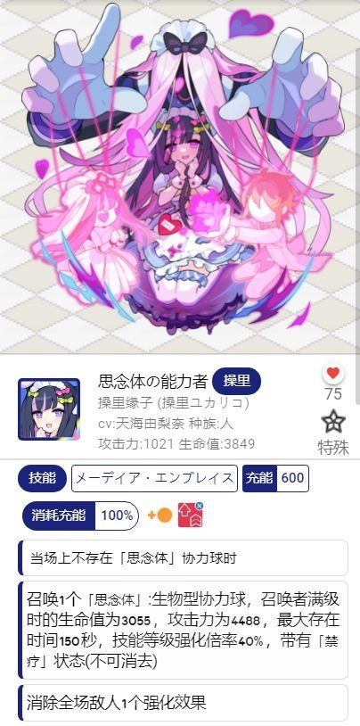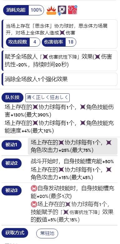 第二个优秀的暗面包人,惯例的50自充,全队加成和面包在场时的高倍率技能。