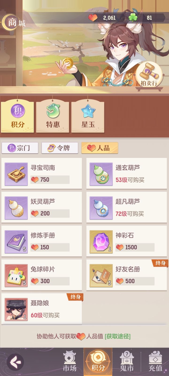 人品商店。有时间就多刷刷,我没有换司南,存着换聂隐娘,我不知道她厉不厉害就是想换她。