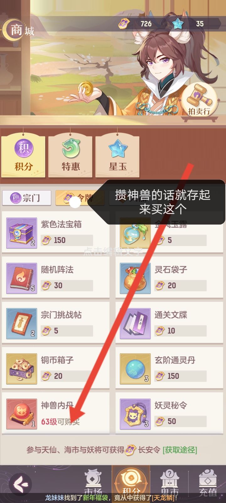 令牌商店。攒神兽就一直存着60多级换神兽丹。