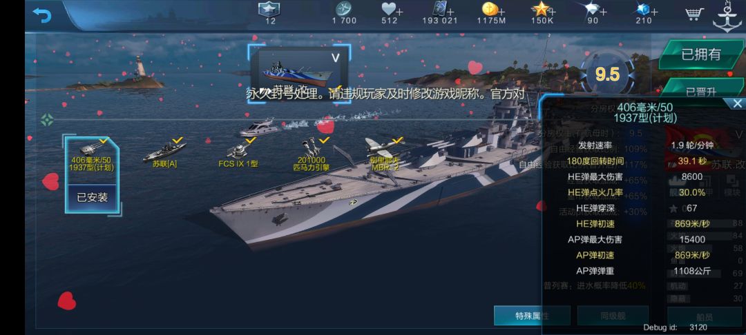 特色:914蛋速弹道平滑的406,航母局t0选手,防空101点。有着超长持续时间的过载。缺点406通常弹标伤不足,刮痧糖豆炮。