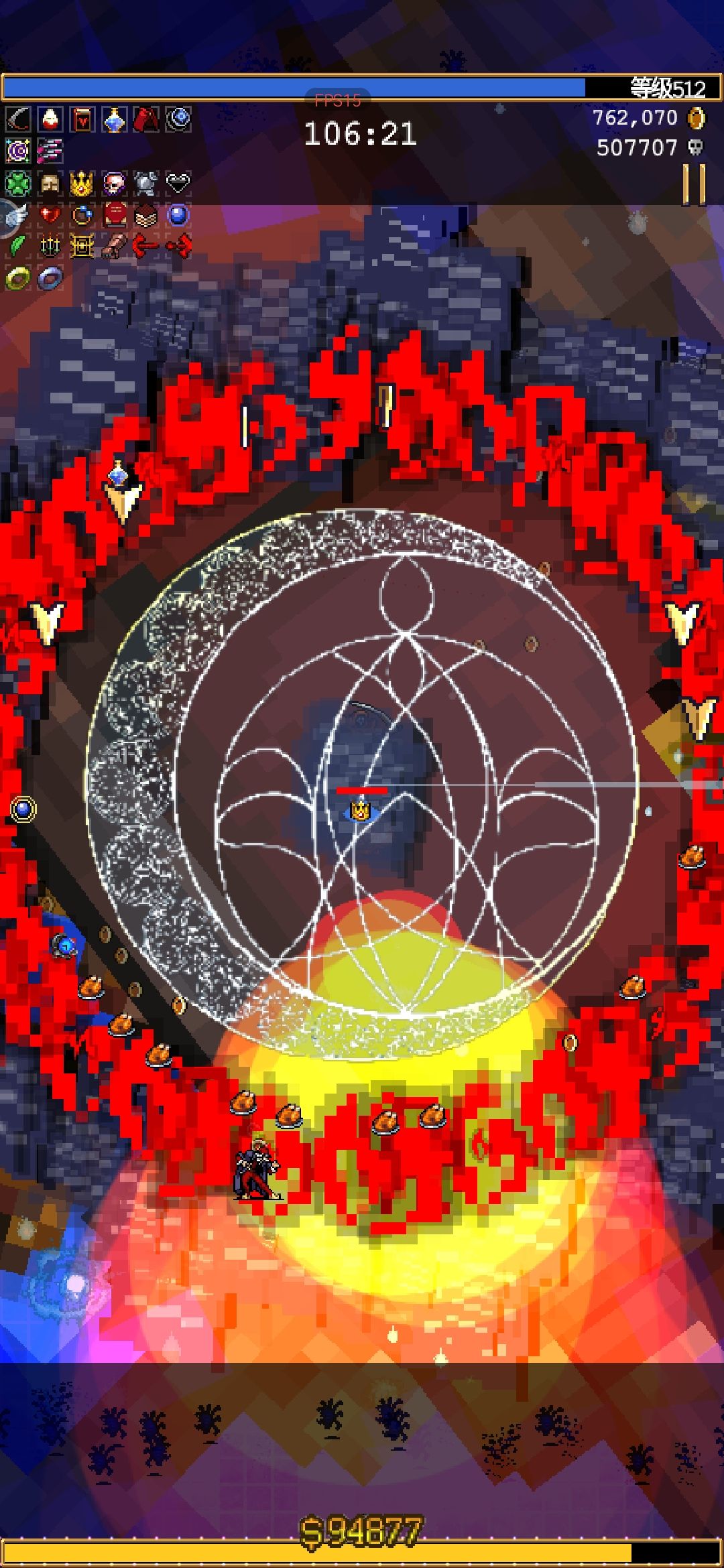 基本上圣水,大蒜,国王圣经三个组合的超武就能阻止前期几个地图的一切了。当然碰到血多的boss还是要慢慢磨。有时钟柳叶刀在,还是能打的。