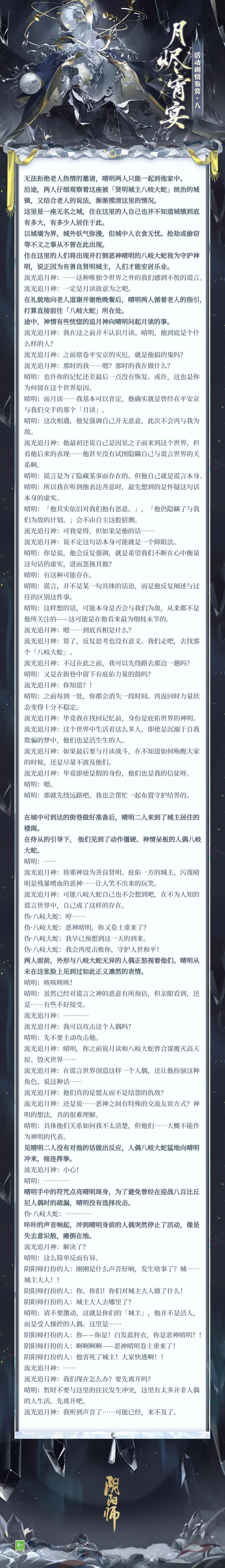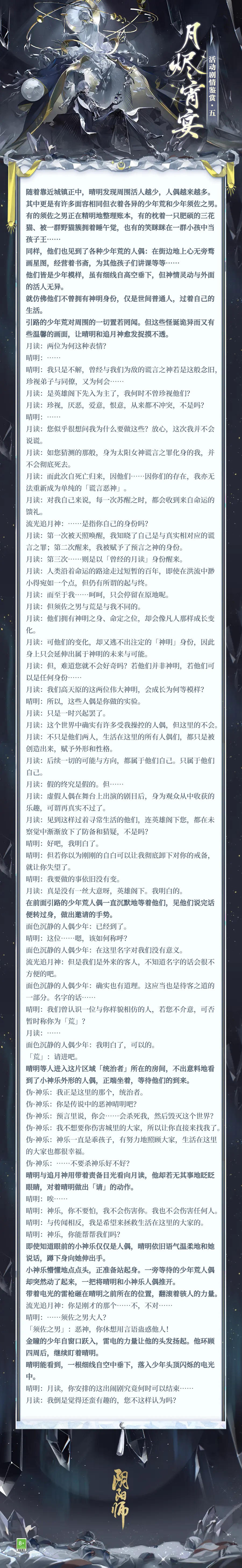 一夕之间坠入陌生世界,昔日相伴的友人却沦为敌人,而自身已是无恶不作的“灭世恶神”——苏醒的晴明面对着如此荒诞局面,被迫踏上了找寻真相的旅程。身边以崭新姿态出现的追月神与神秘莫测的谎言之神,又会将这扑朔迷离的世界引领向何处?