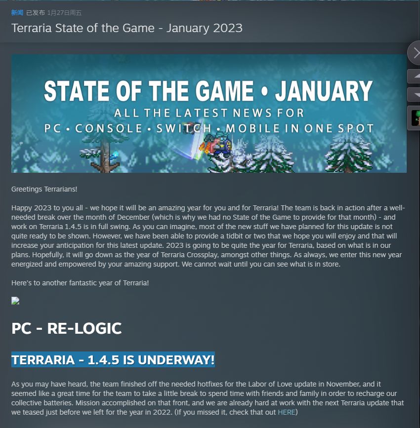 Terraria1.4.5目前状态