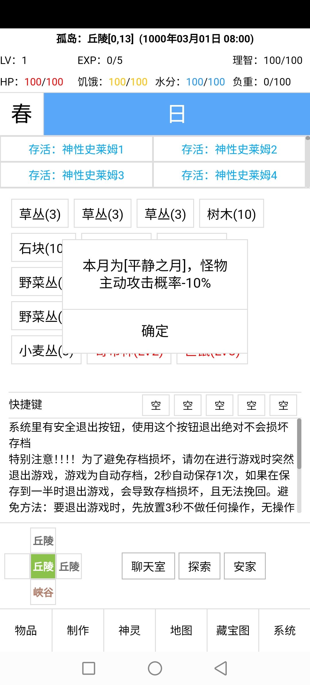 1.每隔一天可以打开地图看一看,利用神话怪会爆出地形,运气好就能直接找到神殿和地底,省去了慢慢找图的时间以及吃喝资源