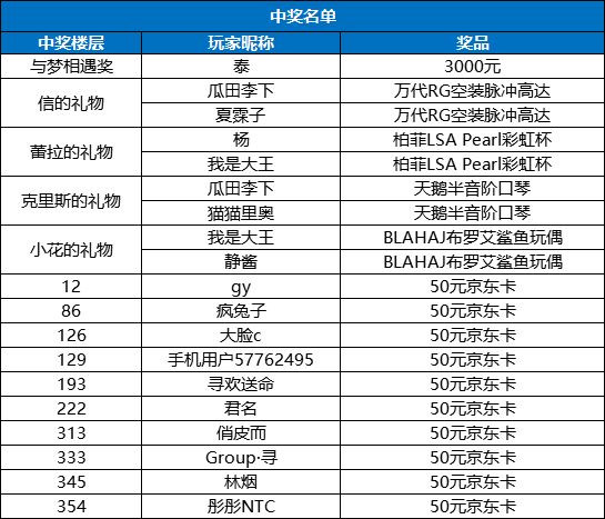 相遇测试结束第一天,咕咕立马把活动大奖公布名单啦!【中奖名单】「与梦中的你,相遇7月20日」五千元大礼掉落!