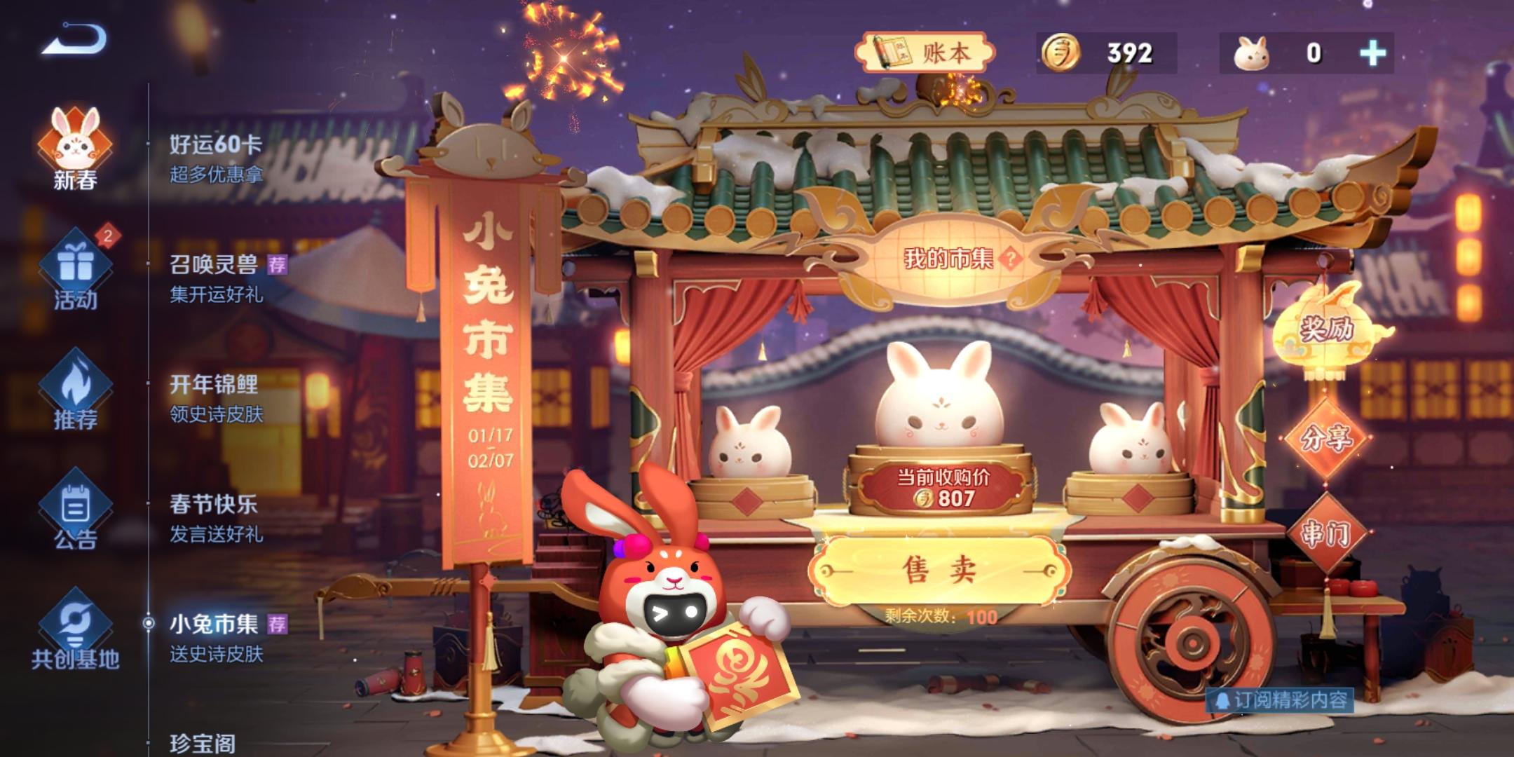 【王者荣耀】偶像歌手FZAXN6【我的小兔糕今天807块】复制链接参与活动,快来我的小兔市集出售吧!兔年上分大吉!