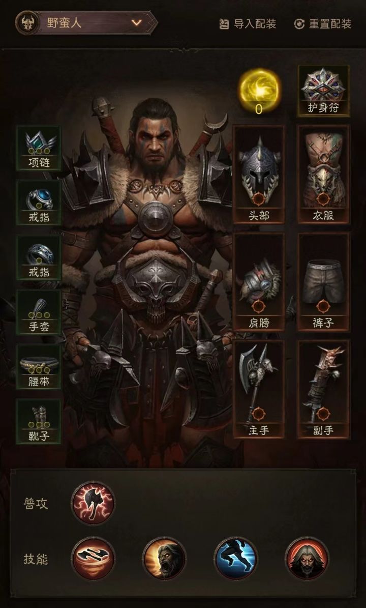 普攻及技能选择:狂乱、旋风击、挫志咆哮、疾奔、不灭之怒。