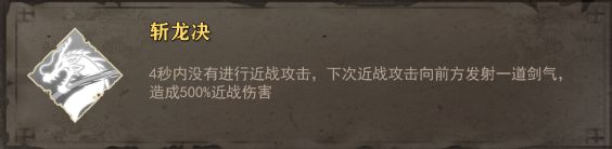 1:使你挥出的每一刀都附带斩龙诀的25%伤害(即固定增伤100%),且有15%的概率造成额外增伤;