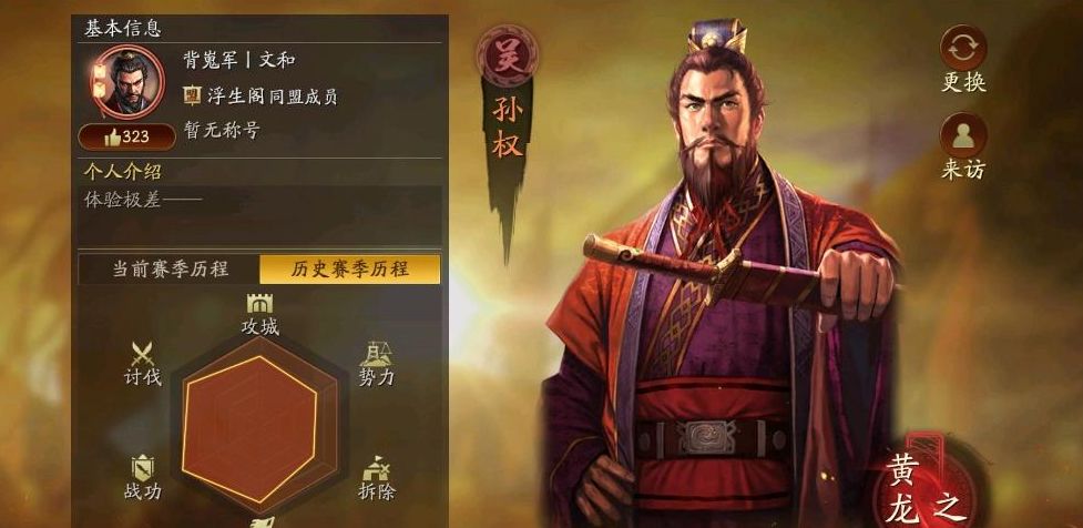 三国志战略版白板武将能打上红字称谓的属实不多,尤其是孙权这个极度吃红度的武将,在多数的人的心里没个四红基本上不会去用,很多玩家满红孙权都照样压箱底丢仓库里面吃灰!本期要给大家介绍的是白板最强天王弓的搭配,红度不给力只要够肝也能有打出孙权称谓的机会!