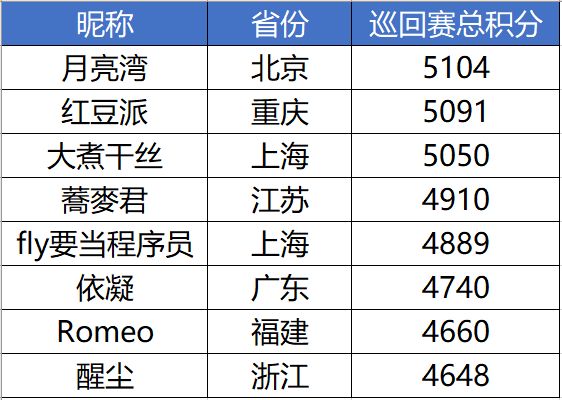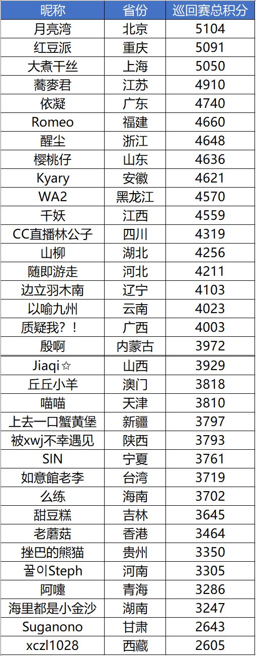 接下来放送的是“重庆站”周预赛中拿到各省第一名的选手名单~