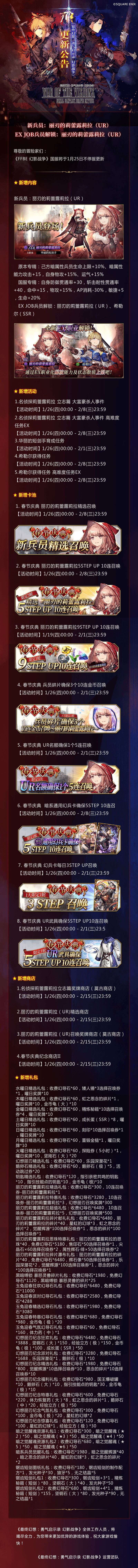 0201更新公告 丨新春庆典开启!丽刃的莉蕾露莉拉(UR)登场!