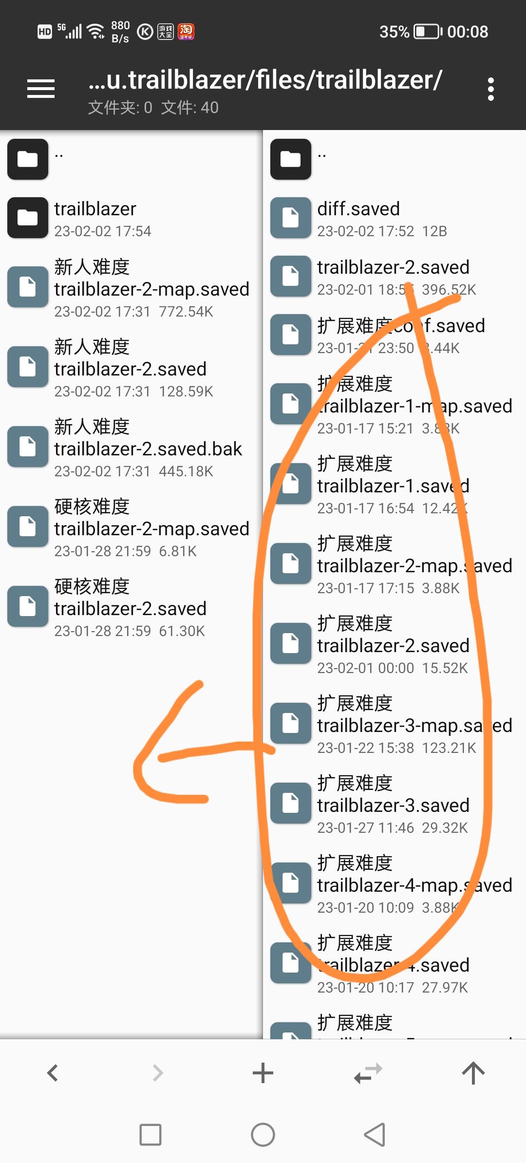如图所示,可以将你右边的存档复制到左边,方便回档(用左边右边都可以,看你的习惯)