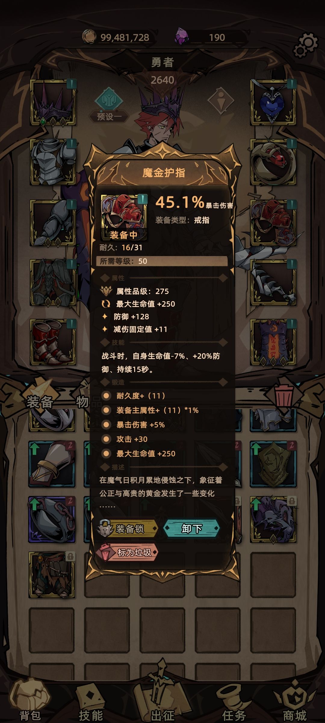 加生命上限使得技能回复的生命更多,加防御可以增加反伤的输出以及生存。