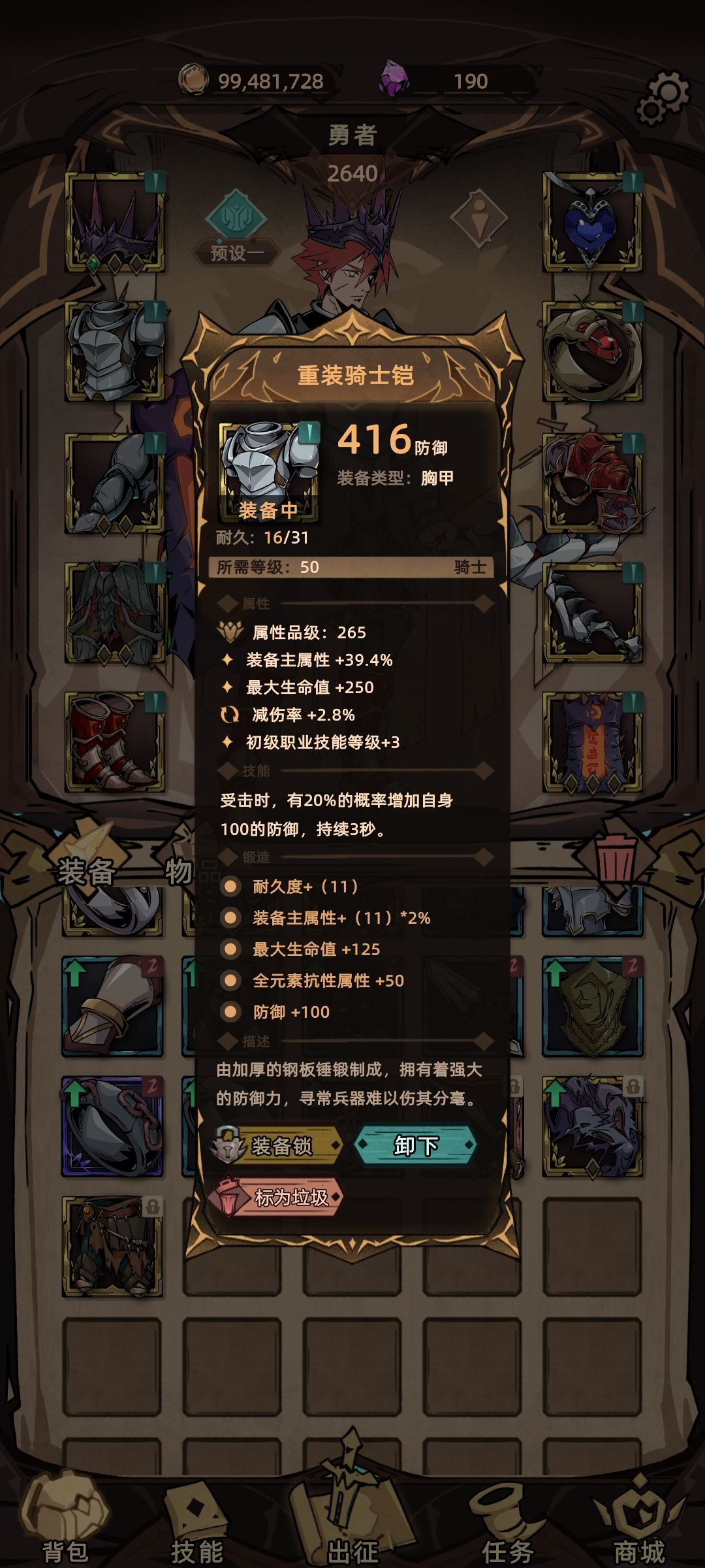 生存向最适合的胸甲了,装备效果没有冷却基本可以常驻。