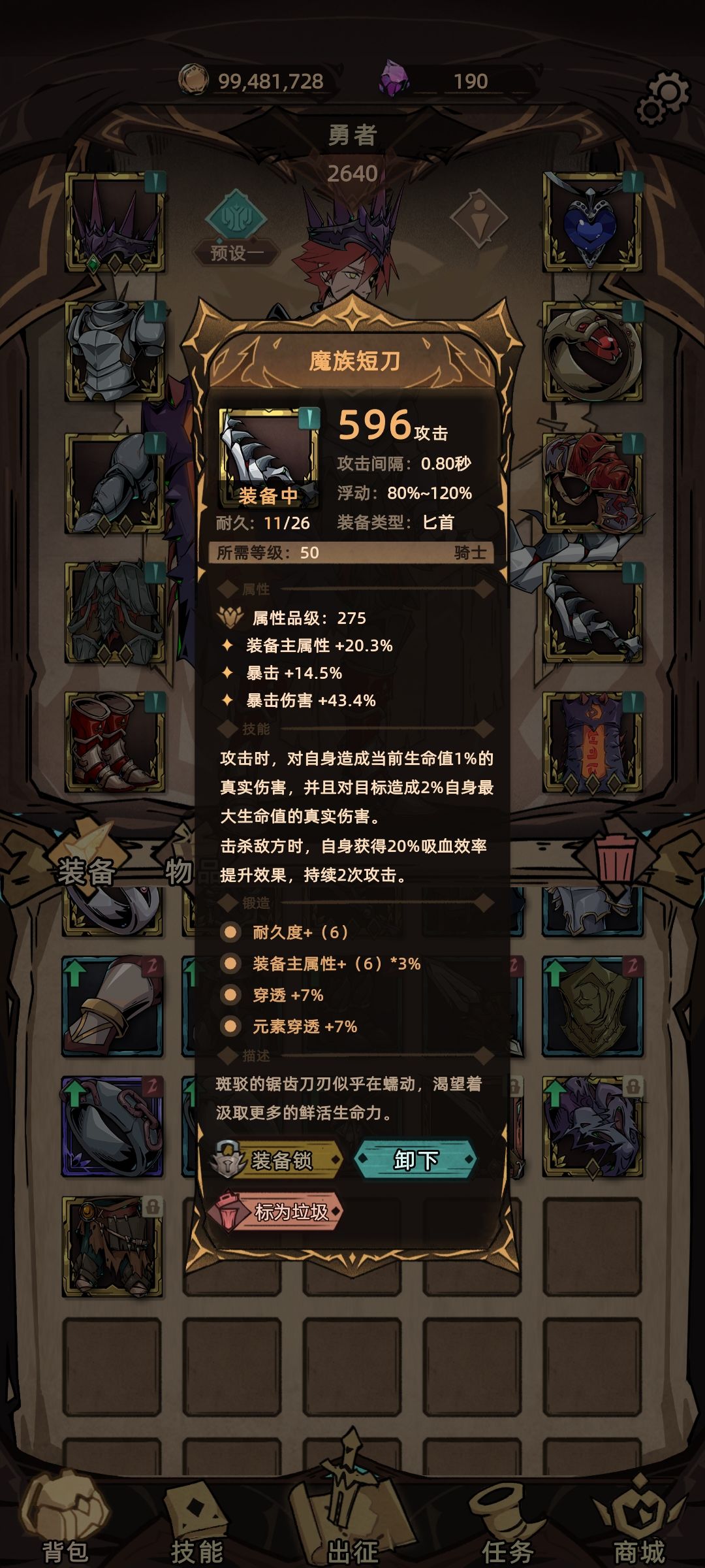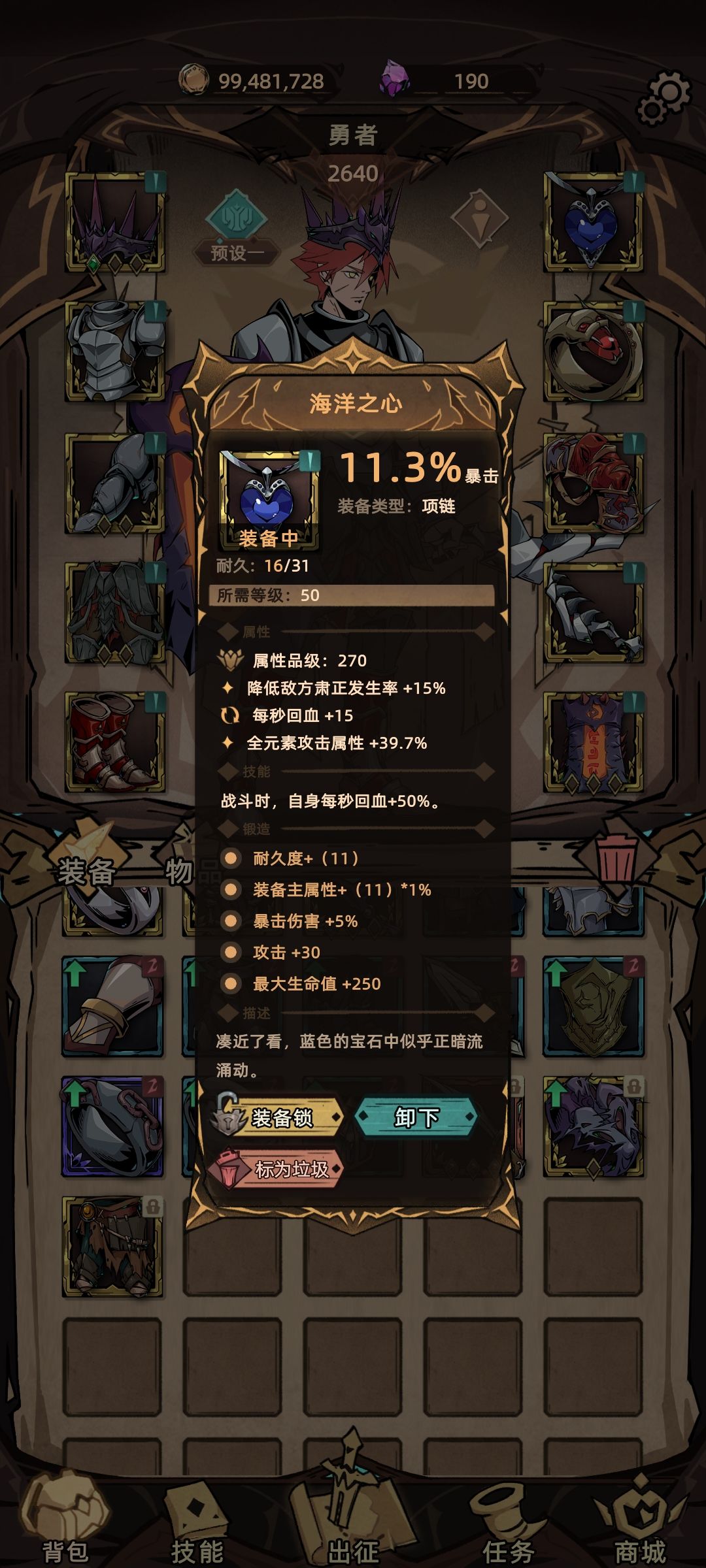 加五的全技能等级、加快50%技能的自然冷却以及聊胜于无的全元素攻击完全可以弥补装备主属性降低90%的生命值,甚至3秒1次的掉血对咱们来说也是正面效果,可惜频率太低。