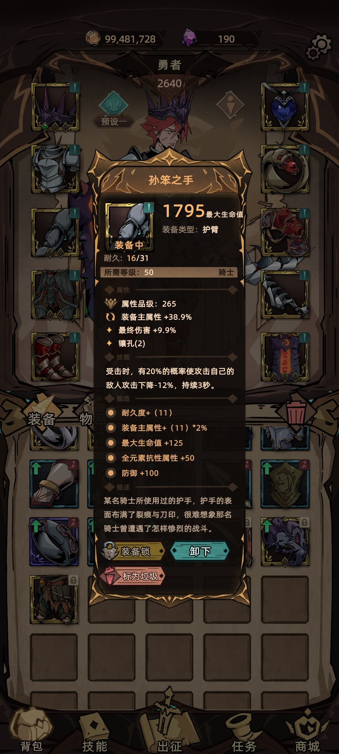 在现有的护臂中算是最合适的了,但也不怎么样。降敌人攻击可能有点用处,但现版本因为bug这个降攻击的debuff自己也会吃到。