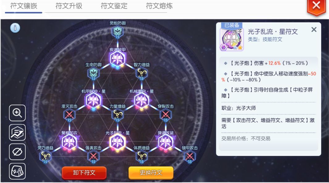 在1.0的基础上,将飞拳B符文换为光子炮的S星即可,其余无需变动。光子炮符文仅用于PVE的话,第一条伤害越高越好,第三词条锦上添花,第二条随意。