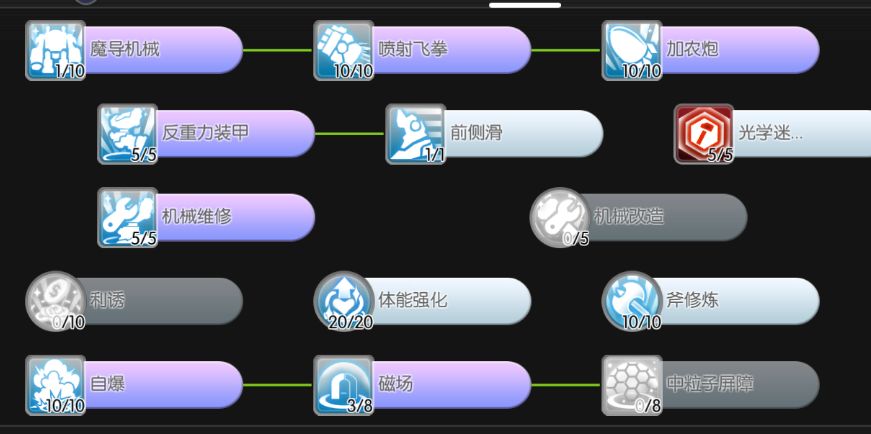 紧急救援:如果被发现了,用紧急救援将机器人光速拉回身边,同时会取消机器人的人工智障状态,并且10s内机器人替你承受伤害。机器人拉回来后,机器人还是会自主的释放磁场、中粒子和白噪声。如果对方是刺客这样的近战,那他就完犊子咯;如果是远程的物理系,机器人的中粒子屏障可以完全免疫伤害,无须担心。法系的话:看你机器人能不能抗住吧,一旦抗住了,第一时间给对方来一个目标锁定,让机器人过去贴脸放白噪声,只要噪声打到了,法系就脆如纸。