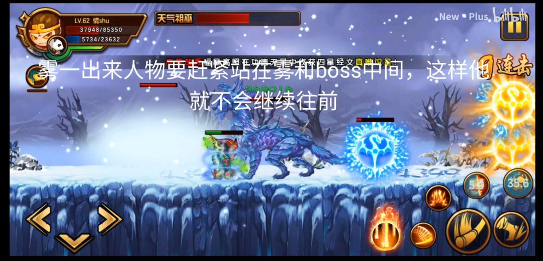 二、BOSS冻天的boss也是比较独特的,因为它有一个吐雾的技能,这个技能会给在雾上的boss回血,所以一定要小心别让boss走到雾上,不然就会前功尽弃。